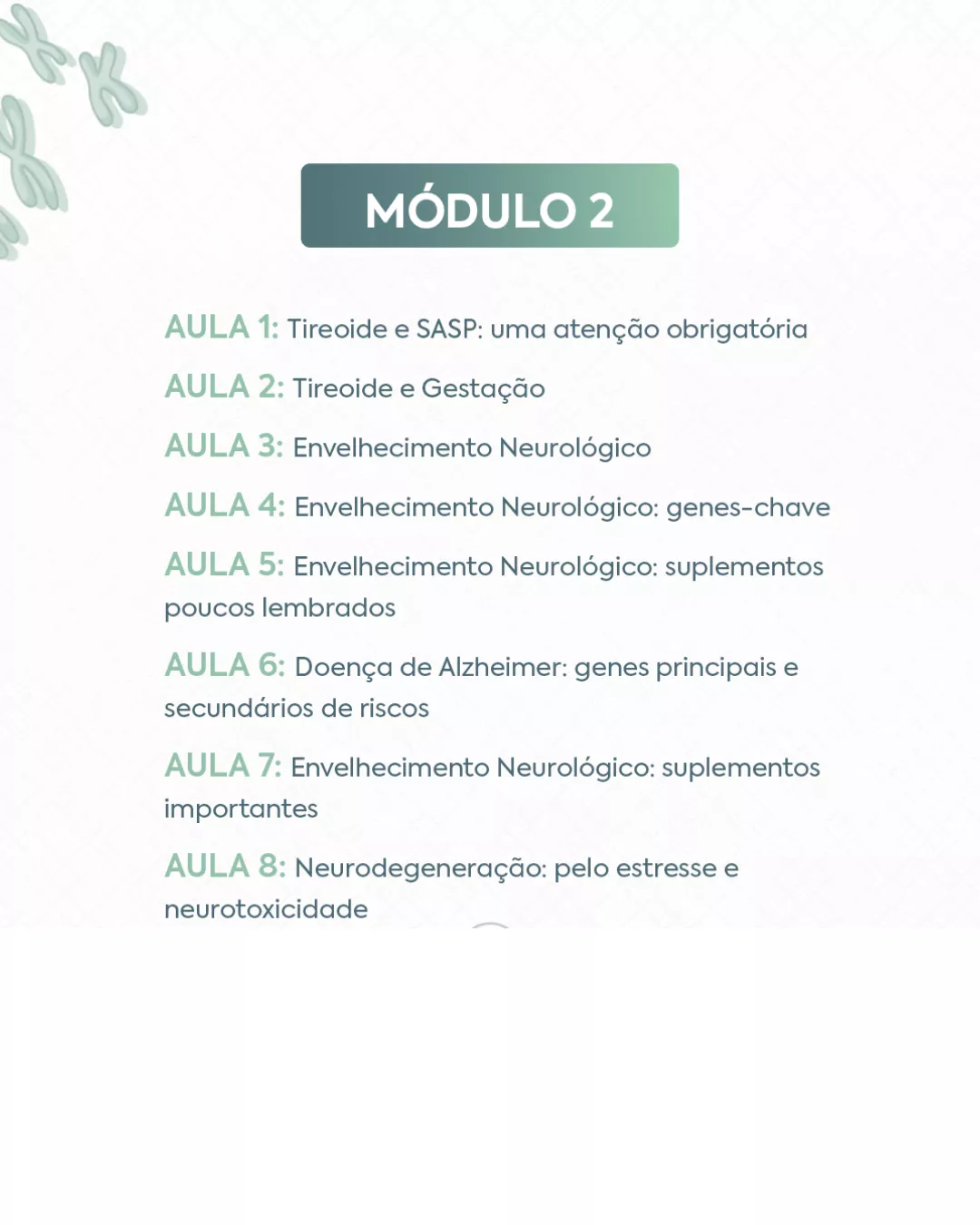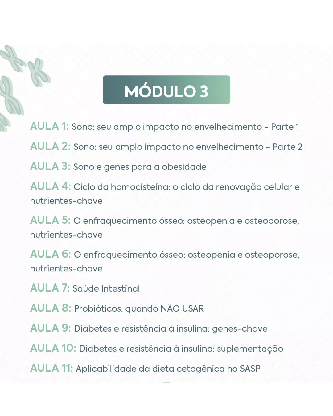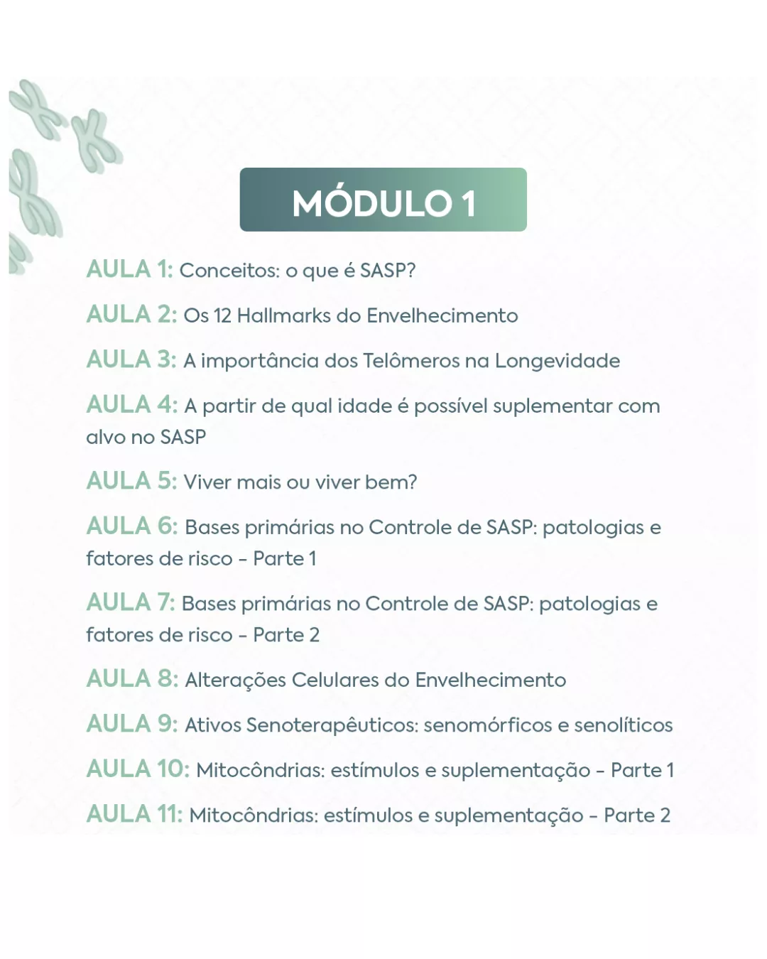 Você vai mergulhar fundo no SASP, o fenômeno secretor associado à Senescência, para entender como as células envelhecidas podem afetar negativamente o microambiente, desencadeando inflamações crônicas e contribuindo para uma série de doenças associadas ao envelhecimento.